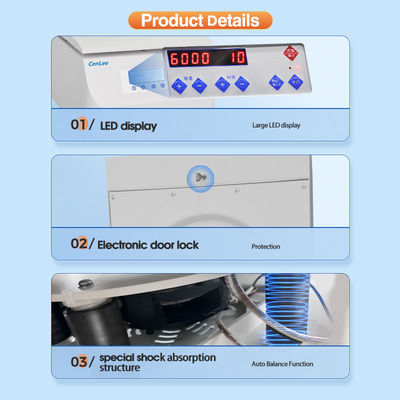 - Panel de operación fácil de usar con modo RCF/RPM automático.
