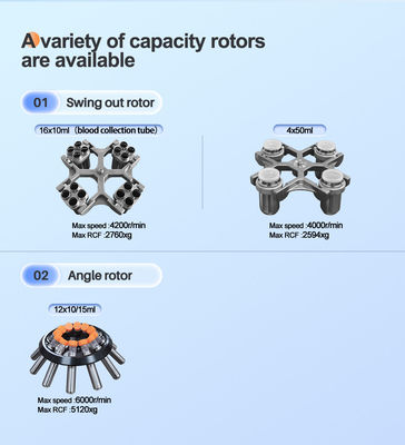 | Swing out Rotor | 1 | 16 x 10ml/(5-7 Blood collection tube) | 4000 | 2594 |